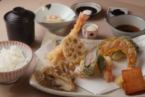 神戸店 25.06.04 『かにと黒舞茸の天ぷら膳』神戸店限定! 今月の厳選食材の『かにと黒舞茸の天ぷら膳』です。 3,000円(税込) ◇天ぷら10品 かに大葉巻き 黒舞茸 海老 海老パン挟み揚げ 下仁田葱 蓮根 南瓜 ブロッコリー 茄子 焼き芋 ◇季節の小鉢 ◇白ご飯 赤出汁 香の物 ※信州戸隠産ざるそばに変更 +440円 ぜひ、ご賞味くださいませ。